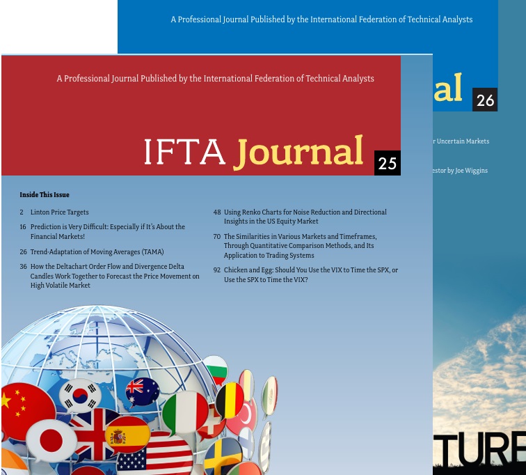 テクニカルアナリスト第2次資格(CFTe®)の保有者は、テクニカルアナリスト資格の最高峰である国際テクニカルアナリスト連盟 Master of Financial Technical Analysis(MFTA® )へ応募することができます。現在、MFTA®資格保有者は全世界に100名強ですが、その約半数はNTAA会員です。MFTA®を取得するためには、IFTAの評価委員会へ指定の書式に従った3,000~5,000ワード(日本語換算で6,000~10,000字程度)の研究論文を提出する必要があります。論文のテーマや検証方法は応募者各人の自由ですが、いくつかの基準を満たしている必要があります。また、論文の構成や書式は「MFTA / IFTA Journal Style Guide」に従って書いていただきます。IFTAへ提出する論文の言語は英語です。英語で論文を書ける方は英語で提出していただきますが、英語で論文を書く自信のない方は日本語で論文を書き、NTAAが翻訳業者に依頼し英語の論文に仕上げるという方法もあります(翻訳料はNTAAが負担します)。